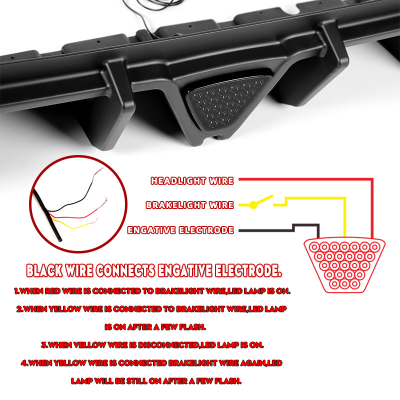 For 2014-2017 Infiniti Q50 Rear Bumper Diffuser Lip W / Smoke LED Light -Unpainted Matte Black