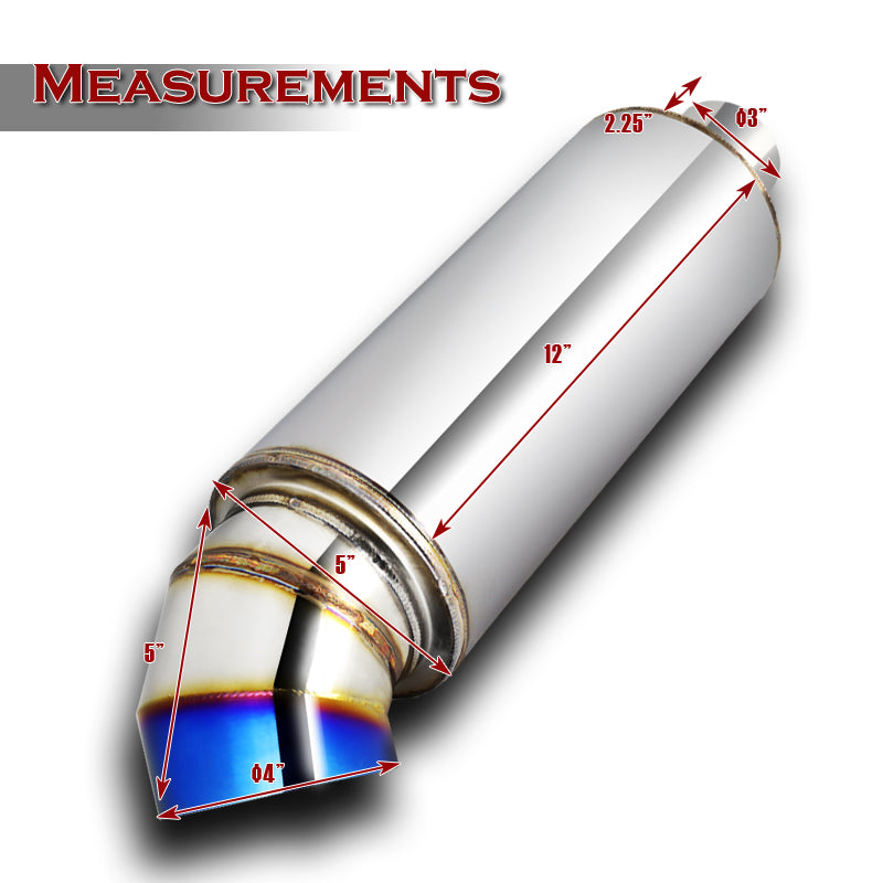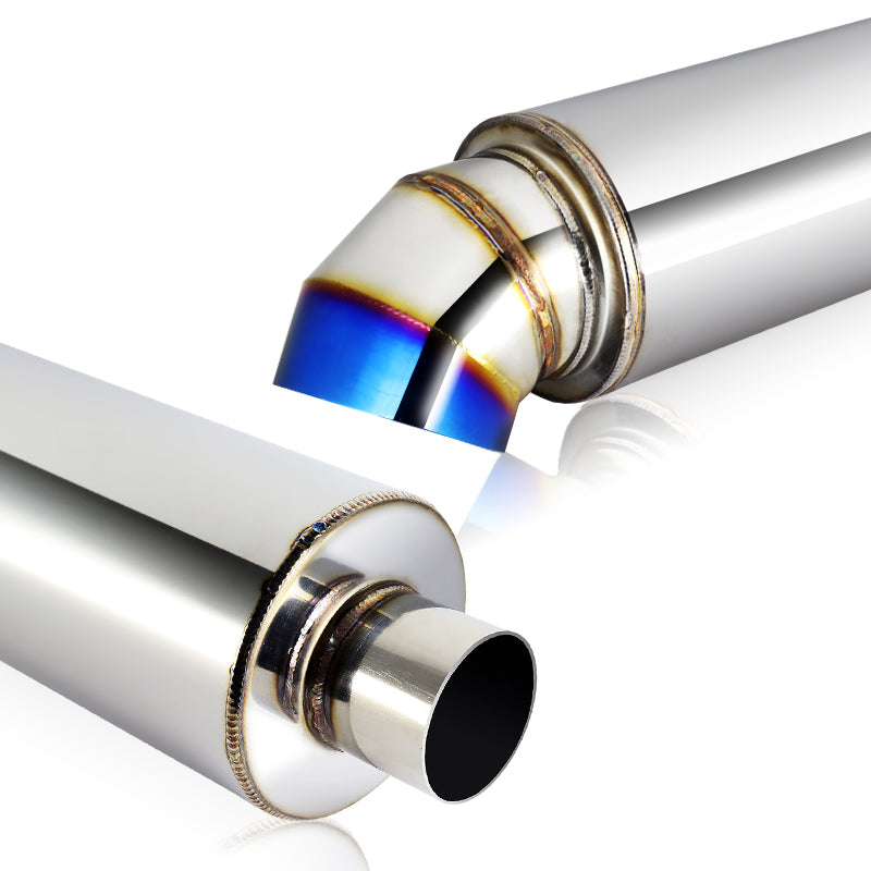 JDM Cutter Knife Style Universal 3" Inlet 4" Outlet Deep And Smooth Tone Weld-On T-304 Exhaust High Flow Turn Down Muffler -Blue Burnt Tip