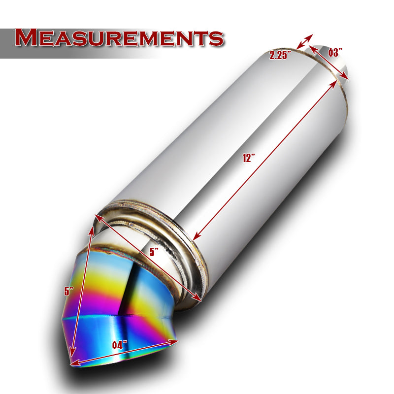 JDM Cutter Knife Style Universal 3" Inlet 4" Outlet Deep And Smooth Tone Weld-On T-304 Exhaust High Flow Turn Down Muffler -Rainbow Burnt Tip