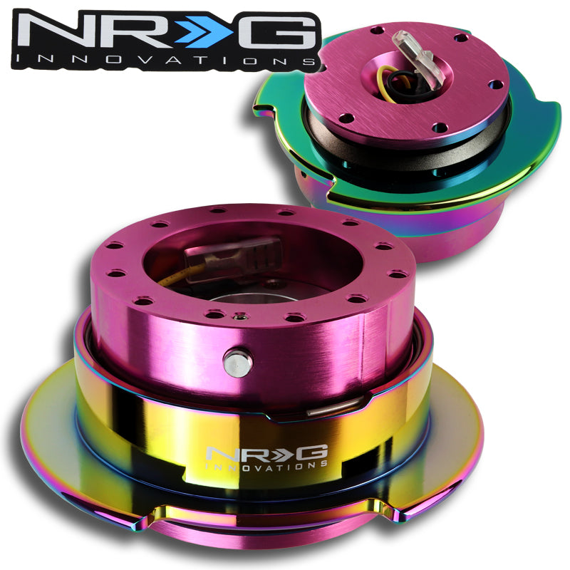 NRG Pink Body Neo Chrome Ring Aluminum 6-Bolt Steering Wheel Gen 2.5 Quick Release Adapter -SRK-250PK-MC