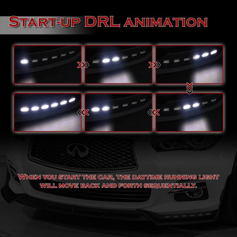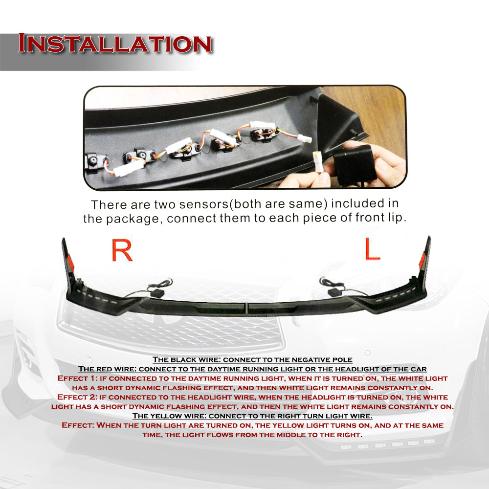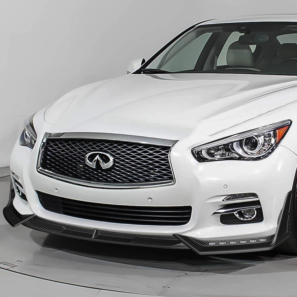 STP-Style For 2014 - 2017 Infiniti Q50 Luxe / Base Front Bumper Lip With LED Sequential Light -Carbon Fiber Look