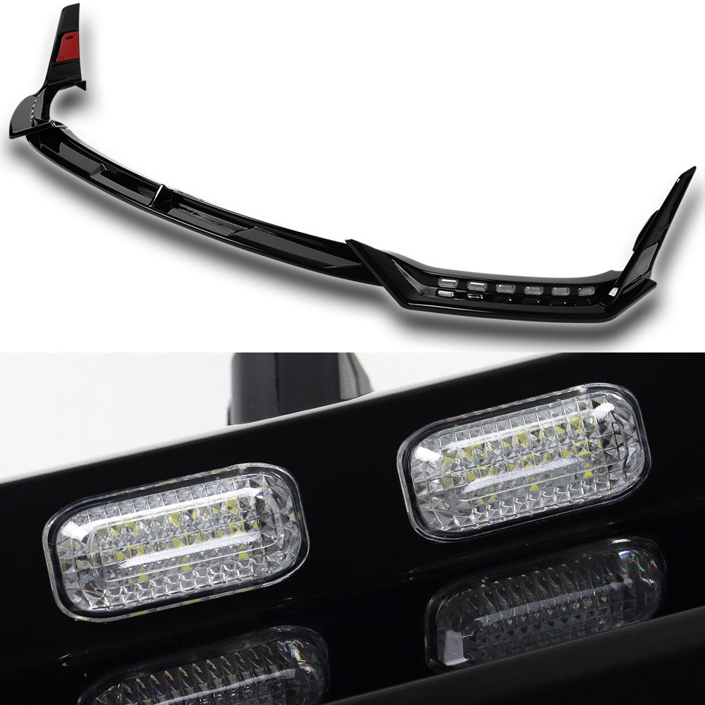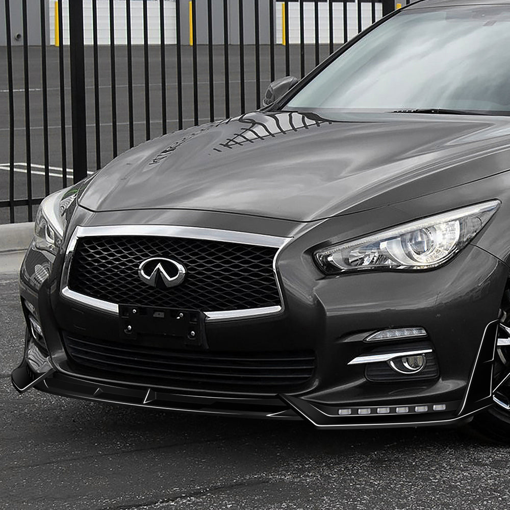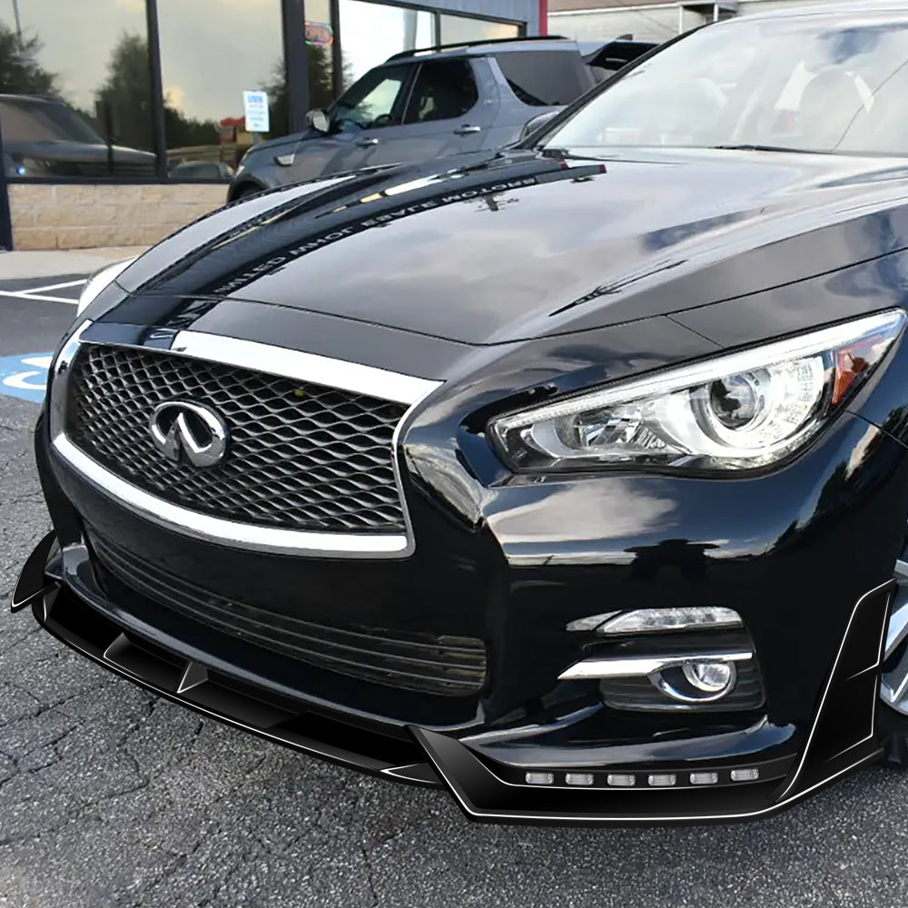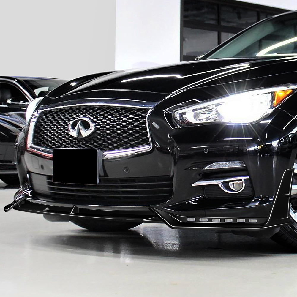 STP-Style For 2014 - 2017 Infiniti Q50 Luxe / Base Front Bumper Lip With LED Sequential Light -Painted Black