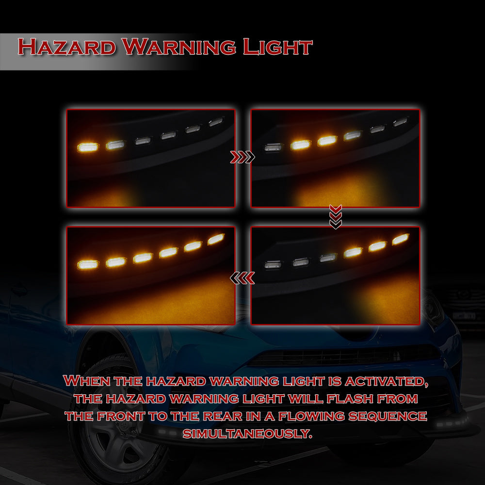 - Sequential whit and amber LED running lights with turn signal