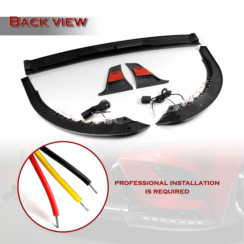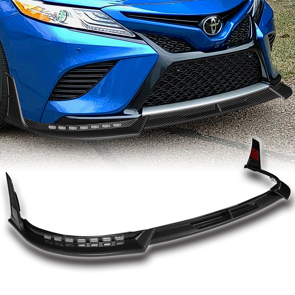 STP-Style For 2018 - 2020 Toyota Camry SE / XSE Front Bumper Lip With LED Sequential Light -Carbon Fiber Look