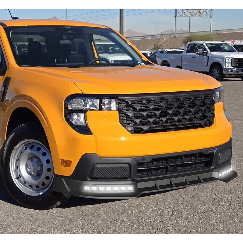 STP-Style For 2025 2026 2027 Ford Maverick XL Pickup Front Bumper Lower Lip Splitter With LED Sequential Light -Unpainted Matte Black