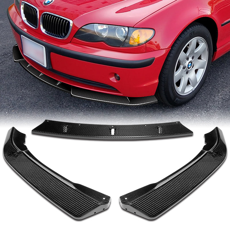 For 2002-2005 BMW 3-Series E46 Sedan Real Carbon Fiber Front Bumper Body Splitter Spoiler Lip 3PCS