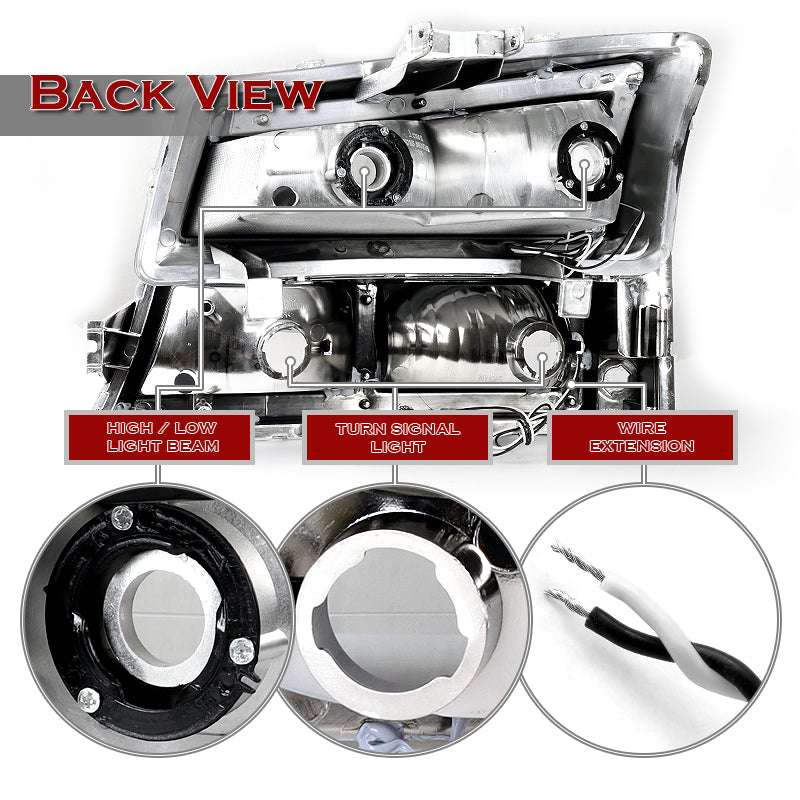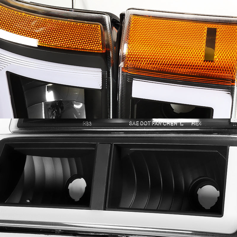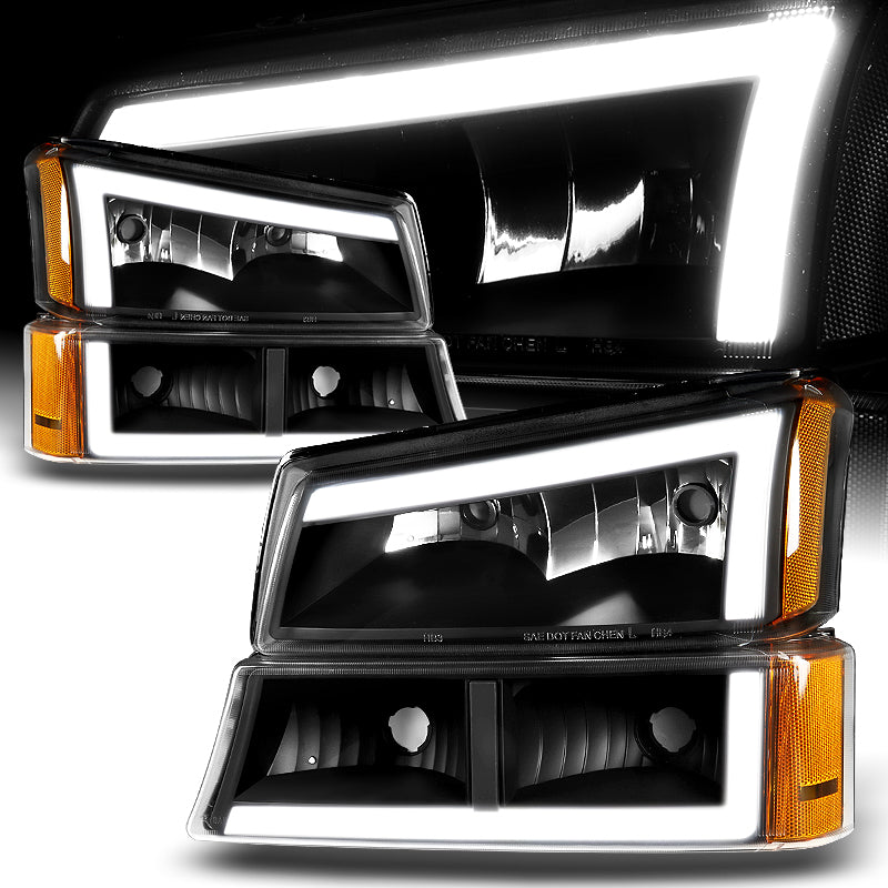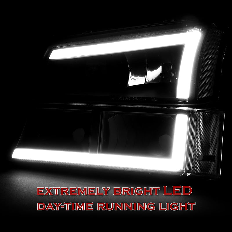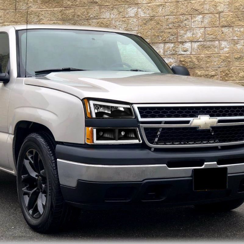 For 2003 - 2007 Chevrolet Chevy Silverado / 2002 - 2006 Avalanche LED DRL Headlights -Black Housing / Clear Lens / Amber Reflectors (4-Piece Set)