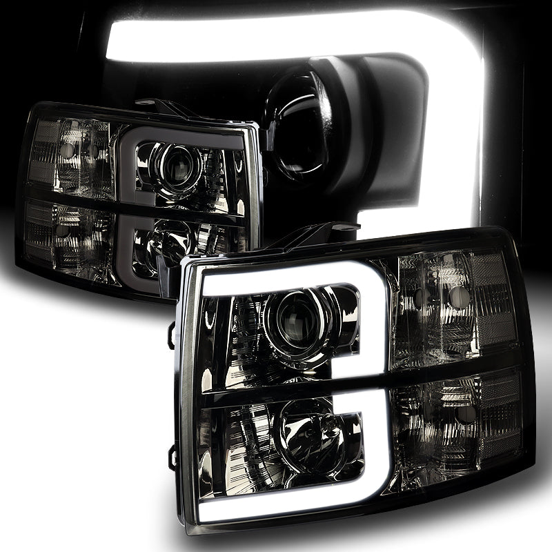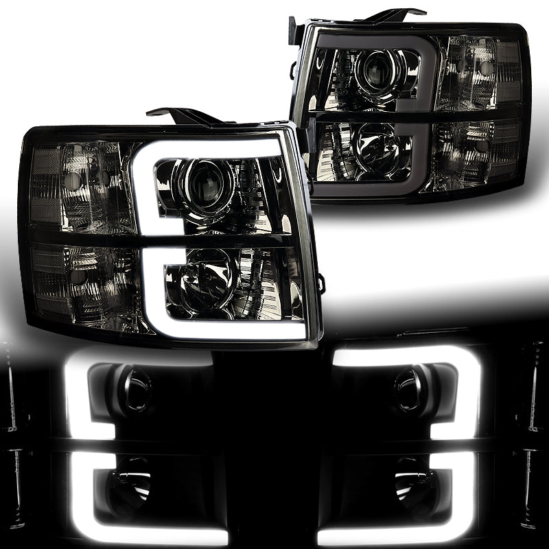 For 2007 - 2014 Chevrolet Chevy Silverado LED DRL Headlights -Chrome Housing / Smoke Lens / Clear Reflectors
