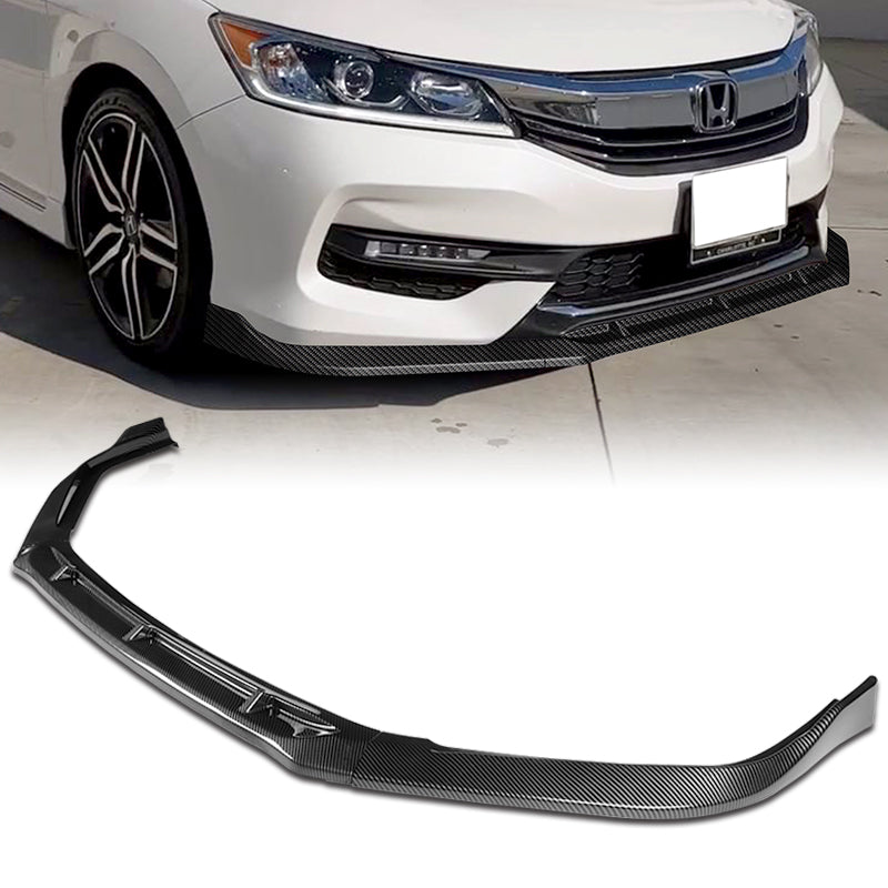 For 2016-17 Honda Accord Sedan Painted Carbon Look STP-Style 3-Piece Front Bumper Body Spoiler Splitter Lip Kit