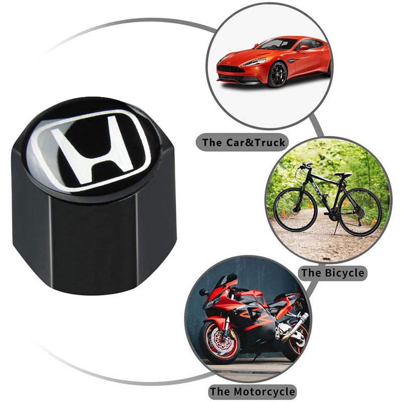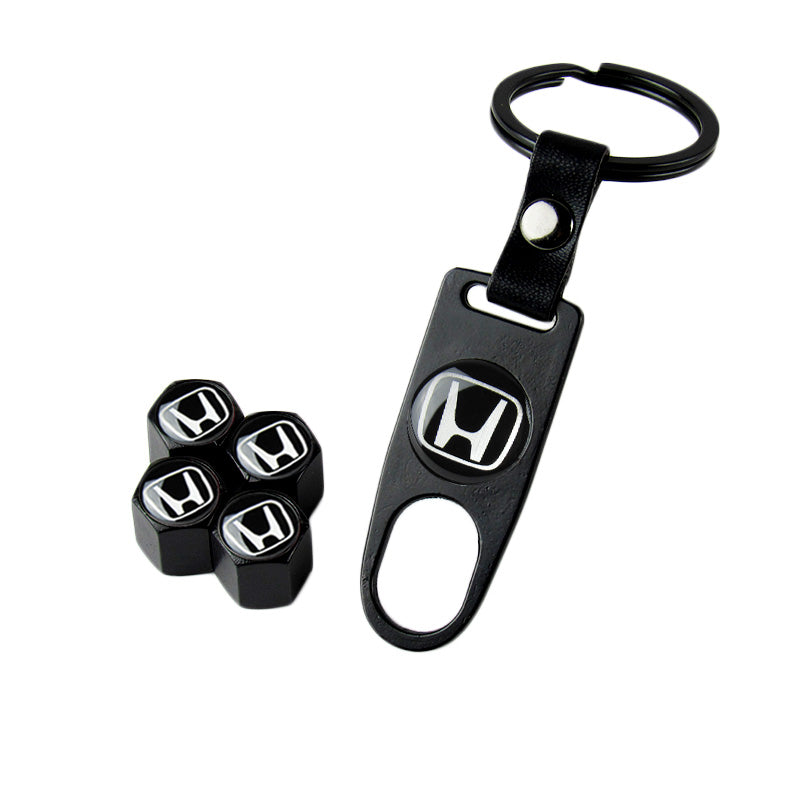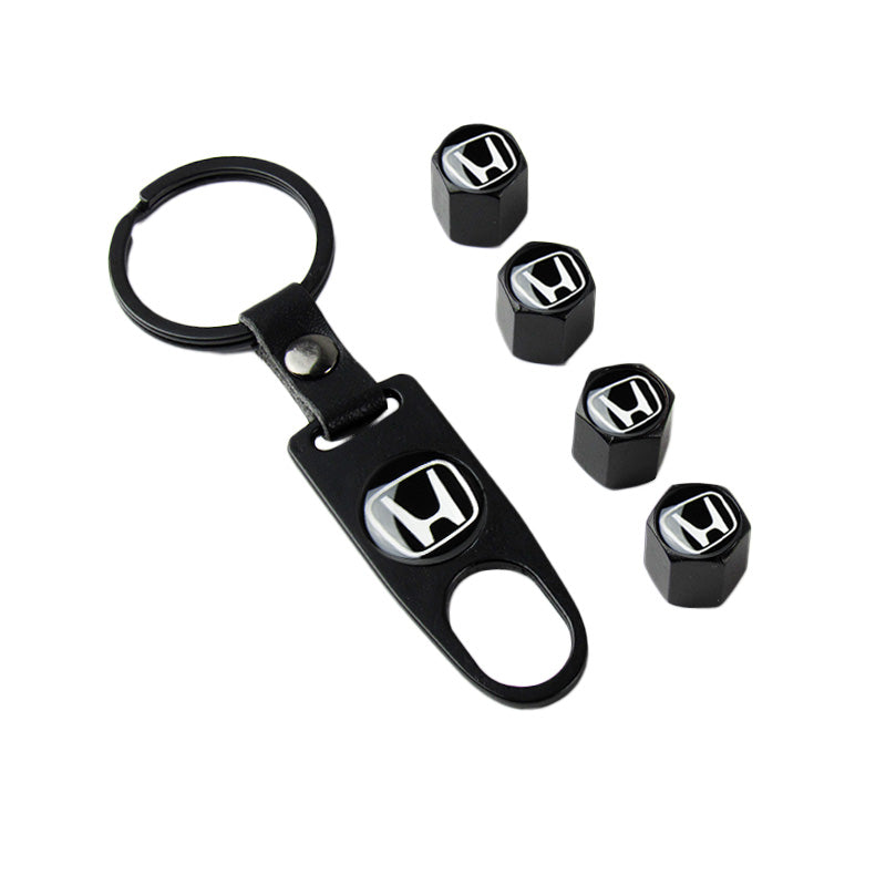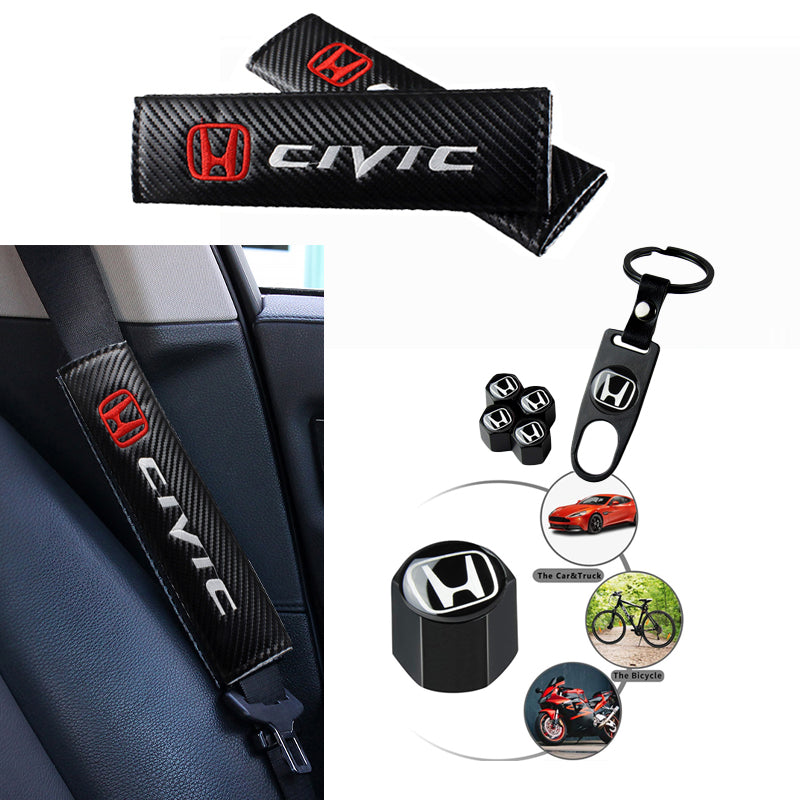 Honda Civic Set of Black Car Wheel Tire Valves Dust Stem Air Caps Keychain with Black Carbon Fiber Look Seat Belt Covers