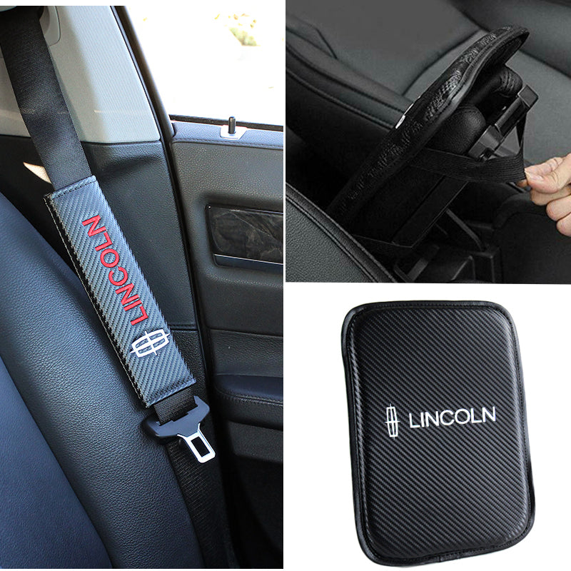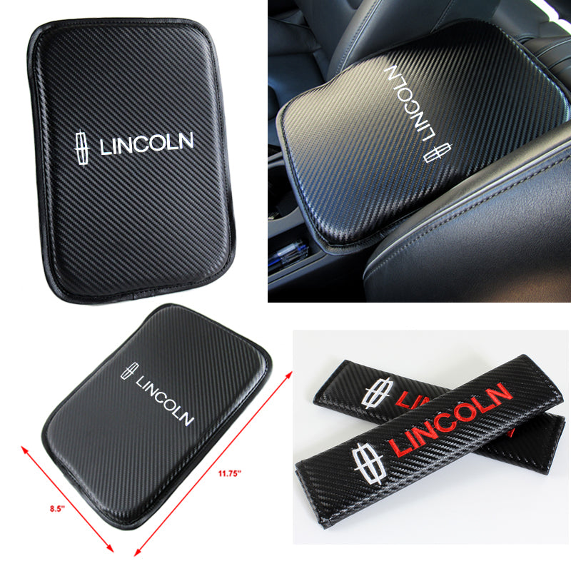 Lincoln Set Car Center Console Armrest Cushion Mat Pad Cover with Embroidery Seat Belt Cover Set