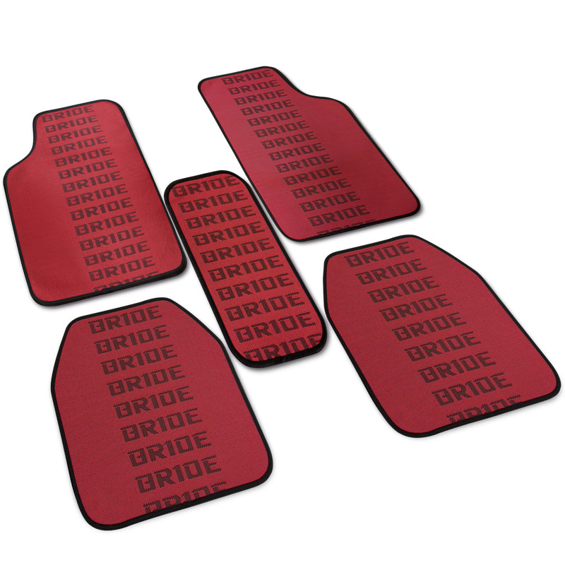 Universal JDM Bride Racing Set of Red/Black 5PCS Hybrid Fabric Floor Mats with Seat Belt Covers