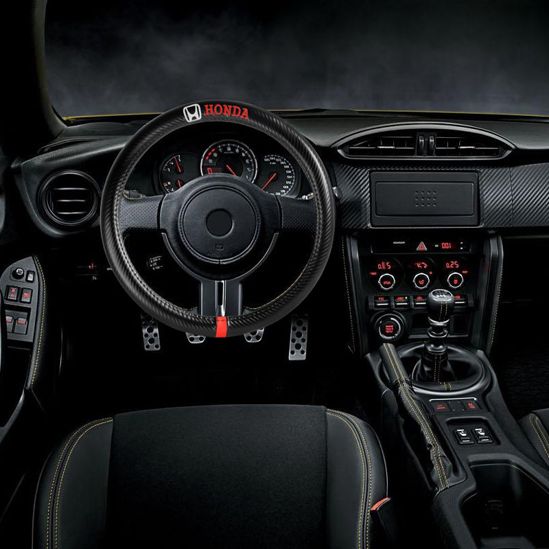 For Honda 15" Diameter Car Steering Wheel Cover Carbon Fiber Look Leather X1