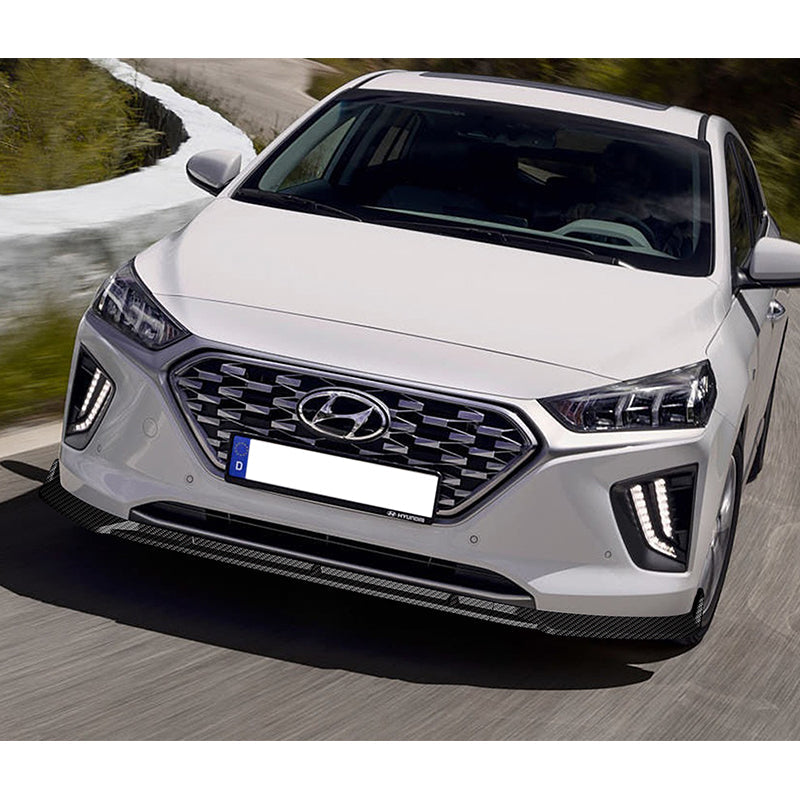 For 2017-2022 Hyundai IONIQ STP-Style Real Carbon Fiber 3-Piece Front Bumper Body Spoiler Splitter Lip Kit with Windshield Banner Combo