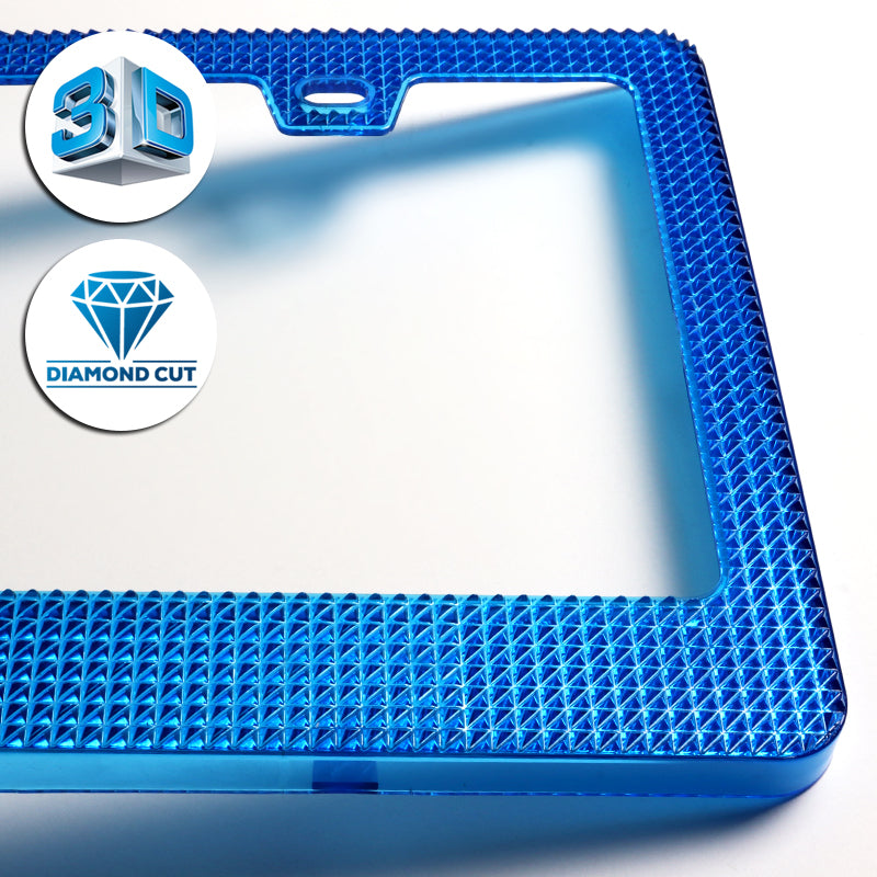 1PC Blue Diamond Cut Style License Plate Frame Covers – Front & Rear