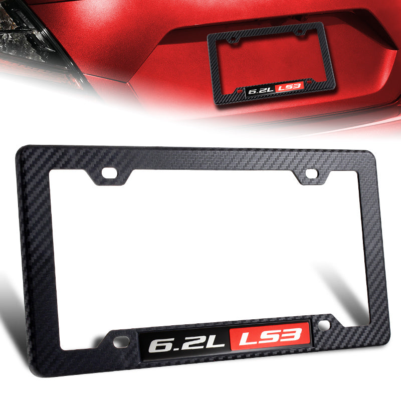 1Pcs Carbon Fiber Style ABS License Plate Tag Frame Cover with Car Trunk Emblems For 6.2L_LS3
