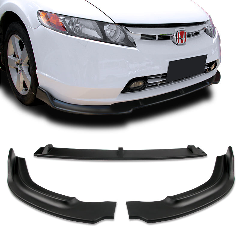 2006-2008 Honda Civic 4DR JDM CS-Style Unpainted Matte Black 3-Piece Front Bumper Body Spoiler Splitter Lip Kit