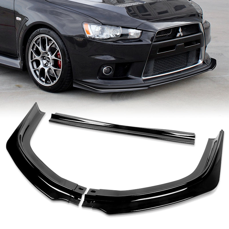 2008-2015 Mitsubishi Evolution X R-Style Painted Black 3-Piece Front Bumper Body Spoiler Splitter Lip Kit