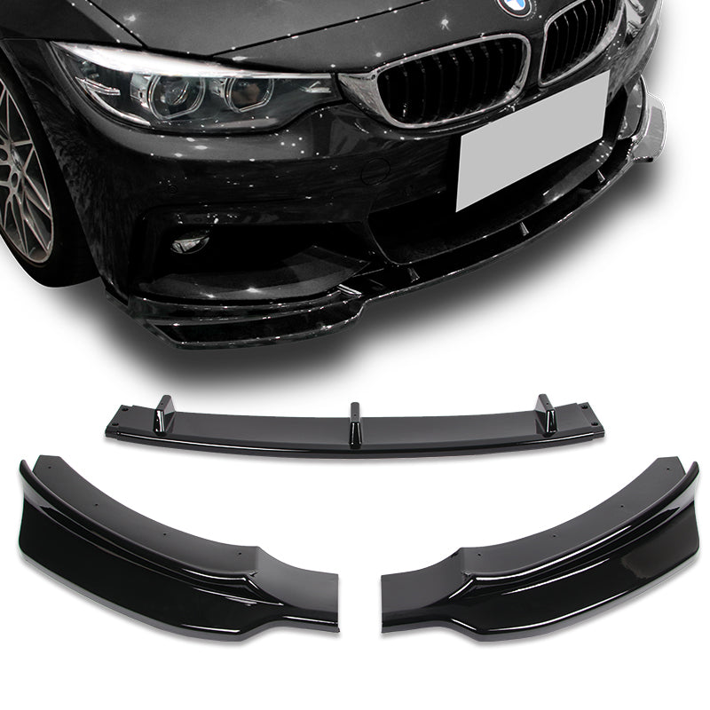 2014-2019 BMW F32 F33 F36 4-Series B-Style M-Sport Painted Black 3-Piece Front Bumper Body Spoiler Splitter Lip Kit with Free Gift