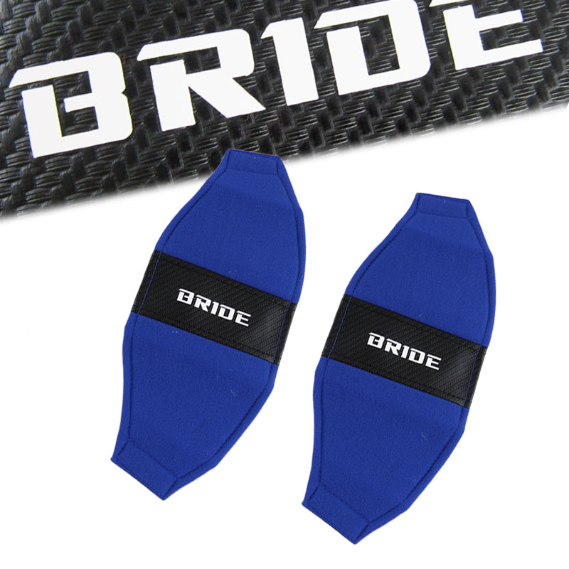 2PCS JDM BRIDE Racing Blue PVC Seat Side Cover Repair Decoration Pad Carbon Look