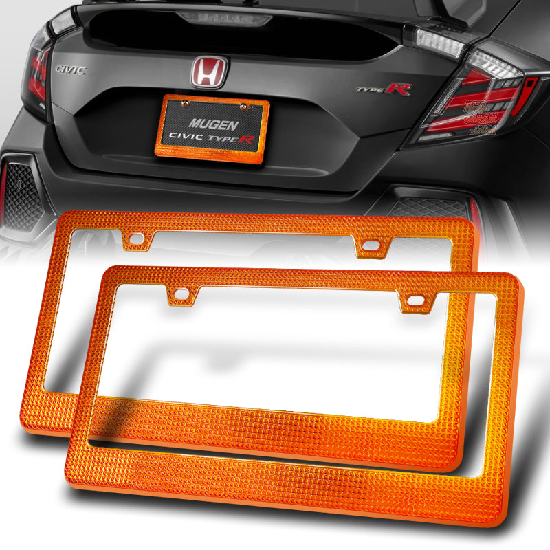 2PCS Orange Diamond Cut Style License Plate Frame Covers – Front & Rear