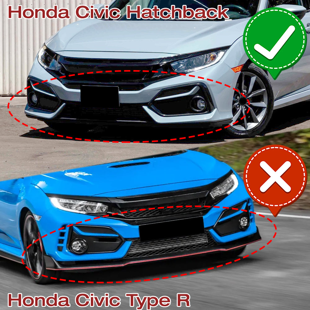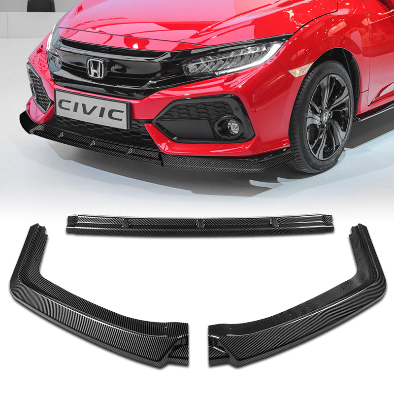 2017-2021 Honda Civic Hatchback Carbon Painted MUG Front Bumper Body Splitter Spoiler Lip 3PCS
