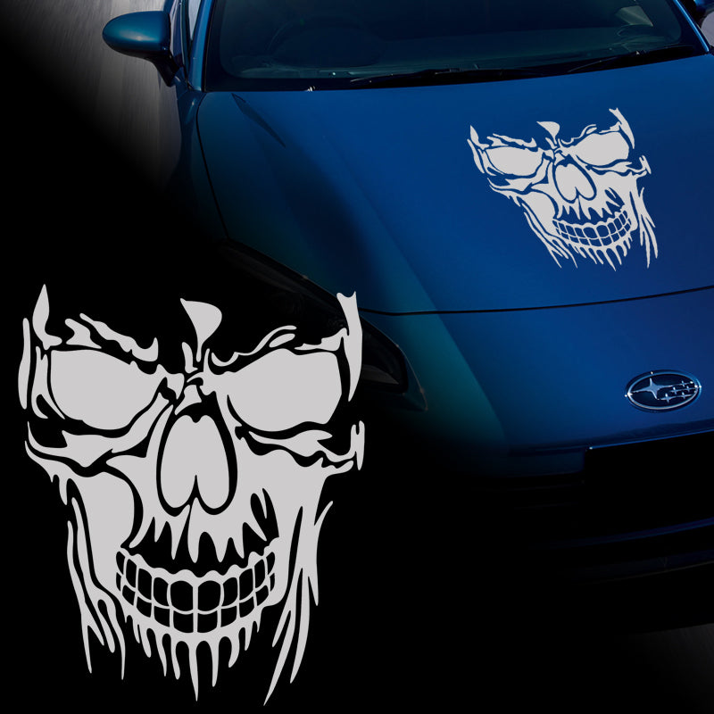 Evil Skull Decal Car Truck Window Silver Vinyl Skull Sticker Scary Skeleton