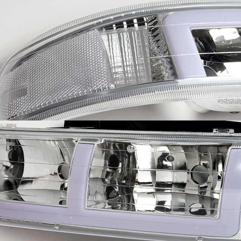 CHROME housing with CLEAR lens DRL LED headlights and bumper lamps featuring CLEAR reflectors with LED Light bar