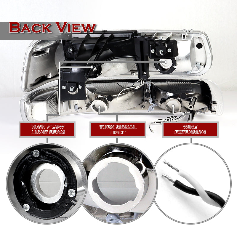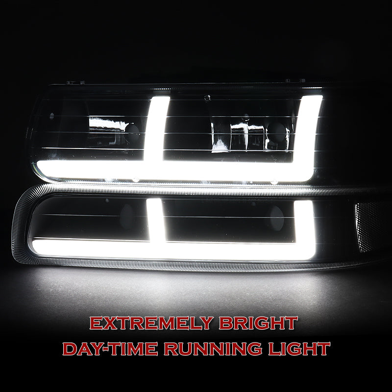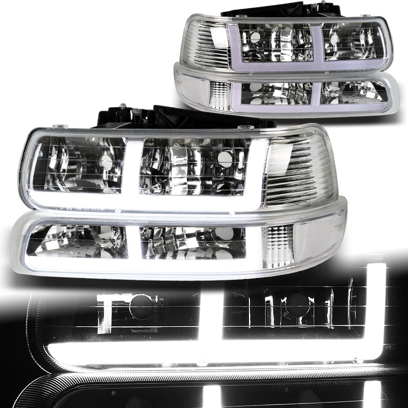 For 1999 - 2002 Chevrolet Chevy Silverado / 2000 - 2006 Tahoe Suburban G2 LED Bar DRL Headlights -Chrome Housing / Clear Lens / Clear Reflectors (4-Piece Set)
