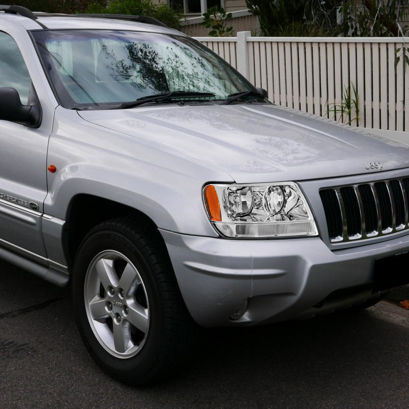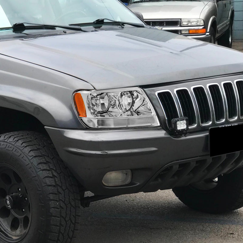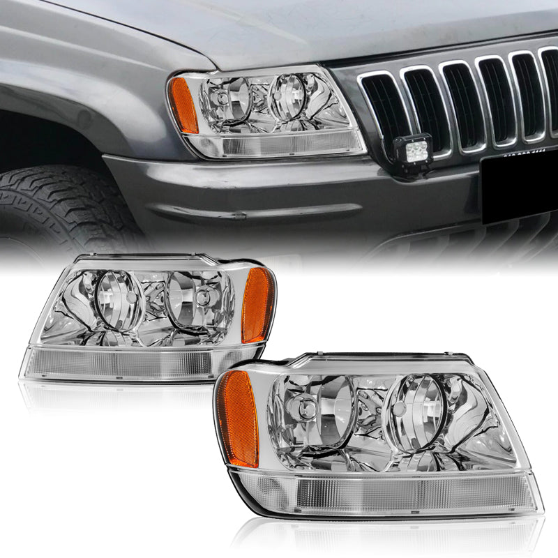 For 1999 - 2004 Jeep Grand Cherokee Headlights -Chrome Housing / Clear Lens / Amber Reflectors