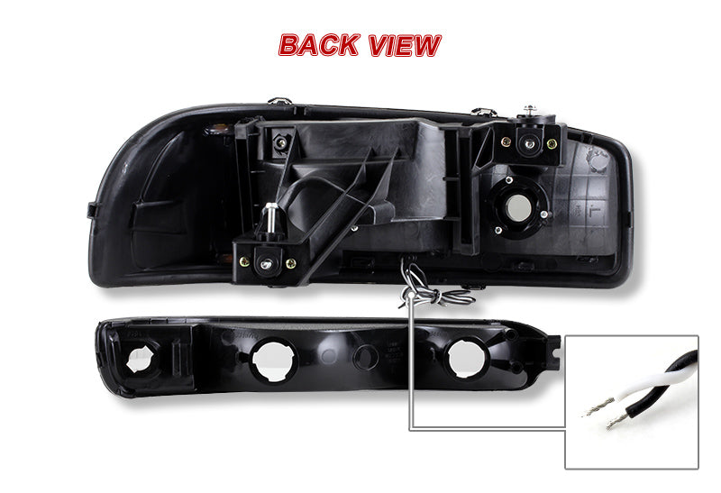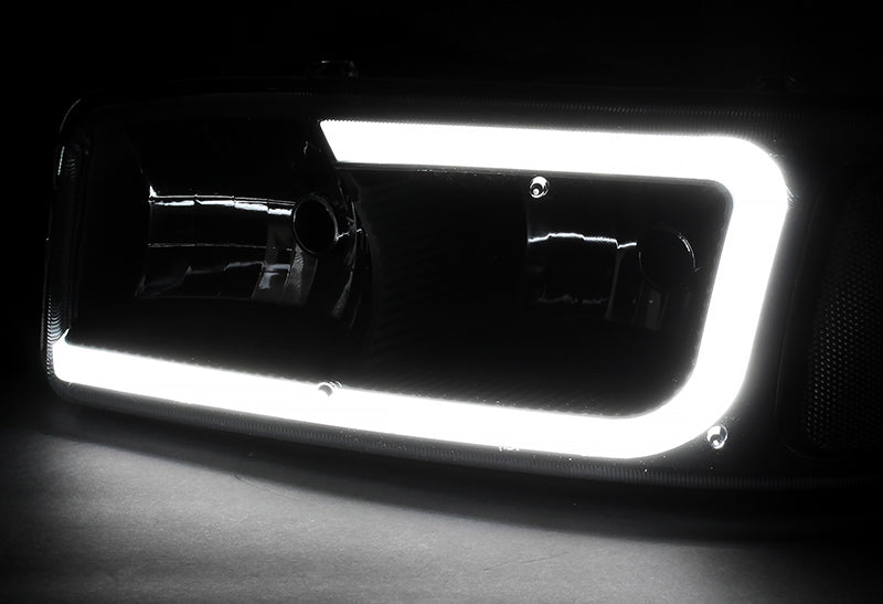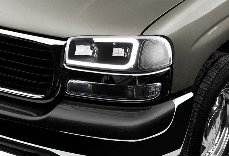 For 1999 - 2006 GMC Sierra / Yukon XL 1500 2500 G2 LED DRL Headlights -Black Housing / Clear Lens / Clear Reflectors (4-Piece Set)