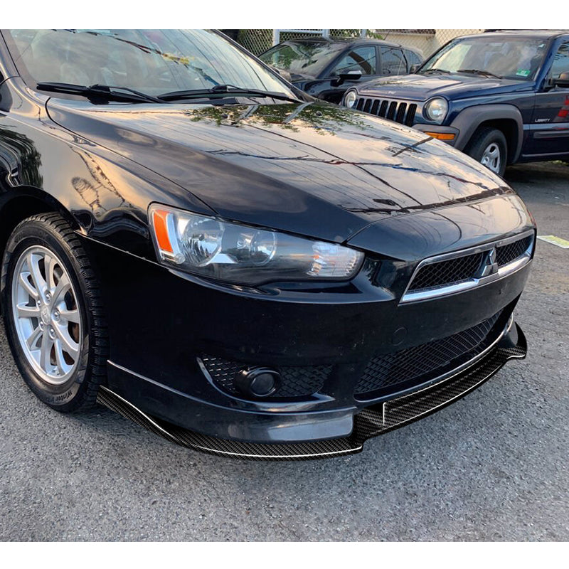 For 2008-2015 Mitsubishi Lancer RA-Style 3-PCS Carbon Fiber Front Bumper Spoiler Lip