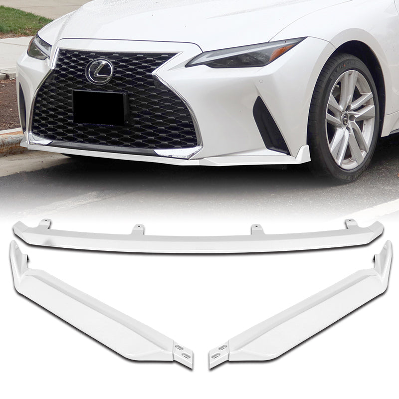 For 2021-2025 Lexus IS300 IS350 Base V-Style 3-PCS Painted White Front Bumper Lip