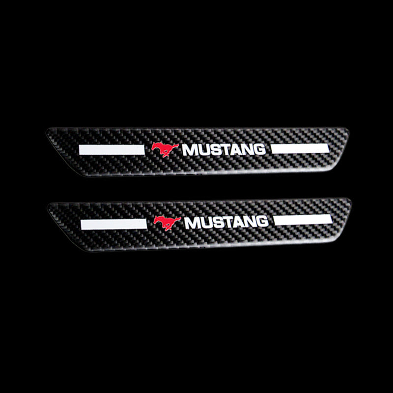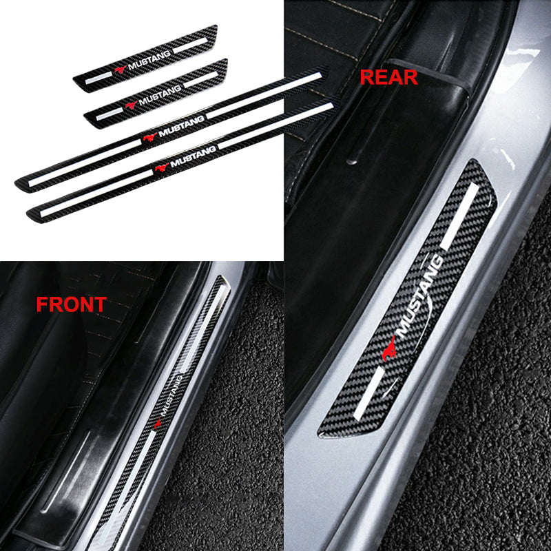 For Mustang Carbon Fiber Car Door Welcome Plate Sill Scuff Cover Decal Sticker 4pc Set
