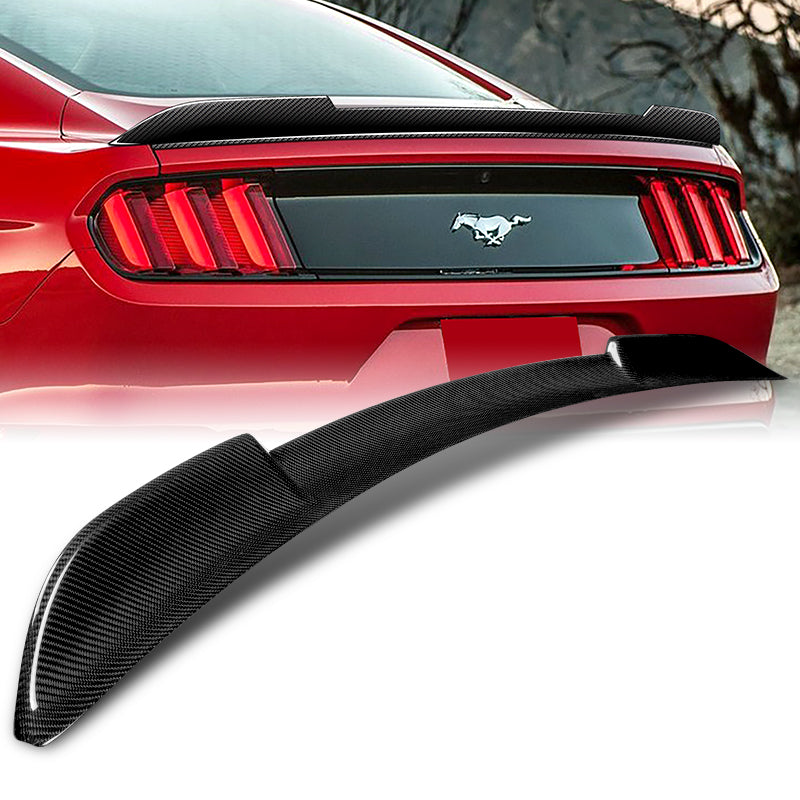 H-Style Rear Trunk Lip Spoiler Wing For 2015-2022 Ford Mustang Coupe 2-DR -Real Carbon Fiber