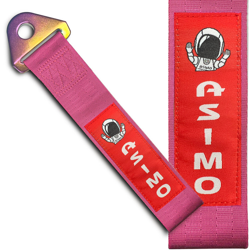 JDM Honda ASIMO Racing NEO CHROME HIGH STRENGTH Pink Tow Strap for Front / Rear Bumper