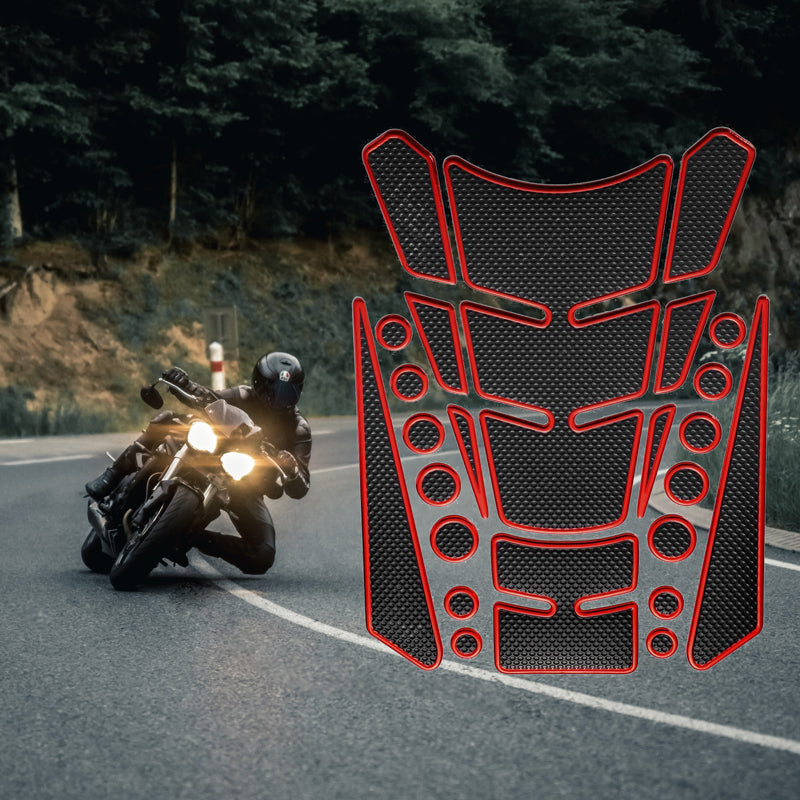 Motorcycle Fuel Tank 3D Gel Pad Protector Carbon Fiber Look Red Decal Sticker Universal