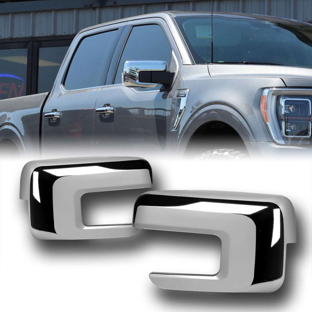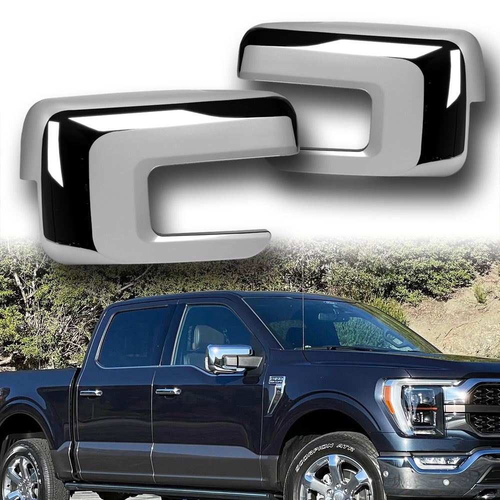 Side View Mirror Covers Overlays Cap For 2021 - 2023 Ford F-150 F150 -Chrome ABS W/ Turn Signal Hole