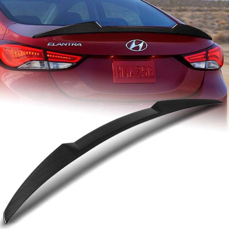 W-Power ABS V-Style Rear Trunk Lip Spoiler Wing For 2011-2016 Hyundai Elantra Sedan 4DR -Carbon Fiber Look